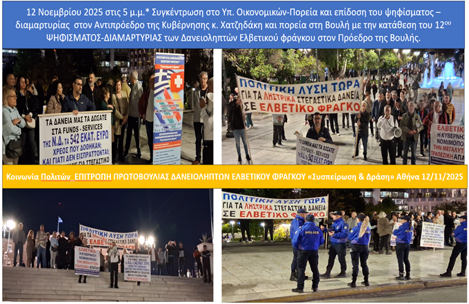 Κοινωνία Πολιτών_ΕΠΙΤΡΟΠΗ ΠΡΩΤΟΒΟΥΛΙΑΣ ΔΑΝΕΙΟΛΗΠΤΩΝ ΕΛΒΕΤΙΚΟΥ ΦΡΑΓΚΟΥ «Συσπείρωση & Δράση» Αθήνα 12/11/2025